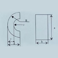 R :外半徑 r :內(nèi)半徑 d :弧高 c :厚度 a :長度 b :寬度 |